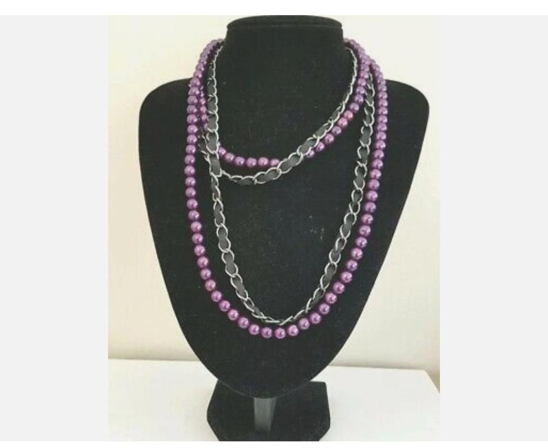 Фиолетово-черное круглое ожерелье из нескольких нитей акриловой жемчужной ленты в стиле панк-узел