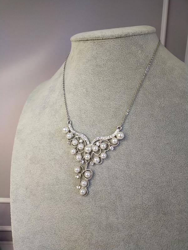 Колье с кристаллами и жемчужинами (имитация). Длина-40+5см