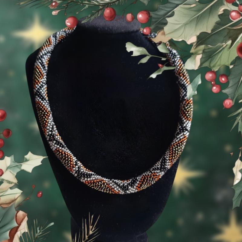 Жгут зв′язаний із чеського бісеру з фурнітурою під срібло. Чудова стильна прикраса, яка підійде і до блузи, і до джинсів, і до сукні. Довжина 46 см. Діаметр жгута 1 см