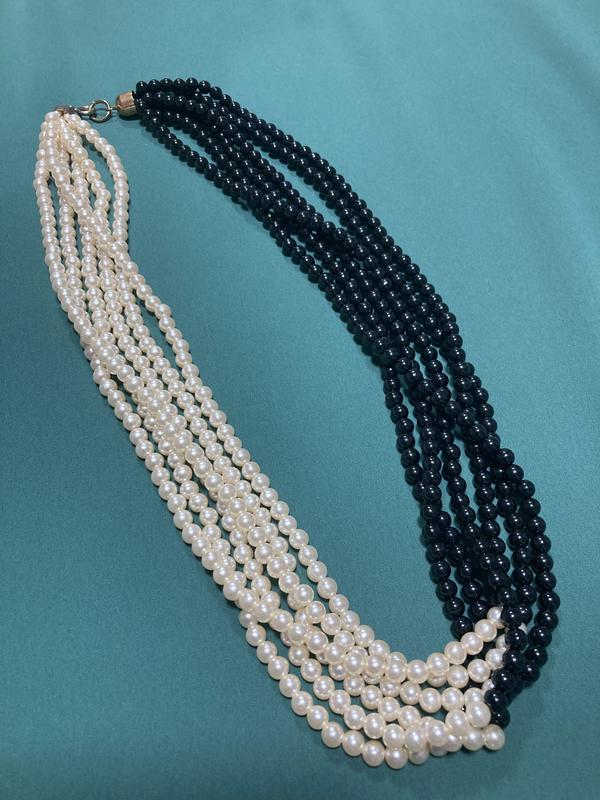 Двуцветное ожерелье из искусственного жемчуга основа пластик винтаж из 80-х. Длина 60см