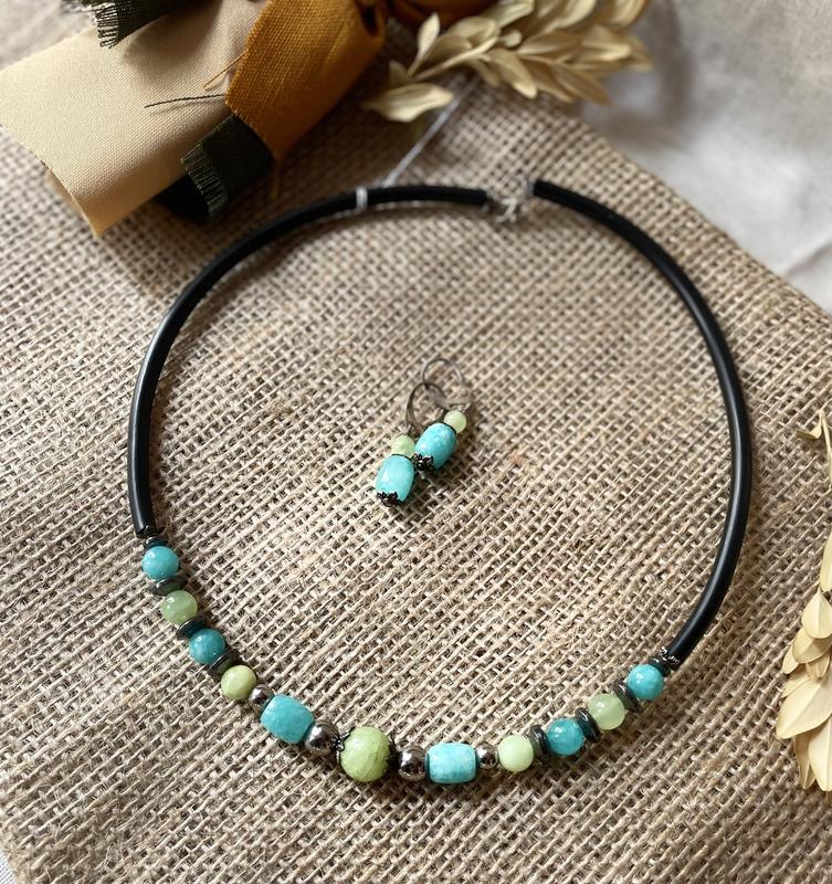 Нефрит, аквамарин, тонований гематит. Серьги на посеребренных швензах