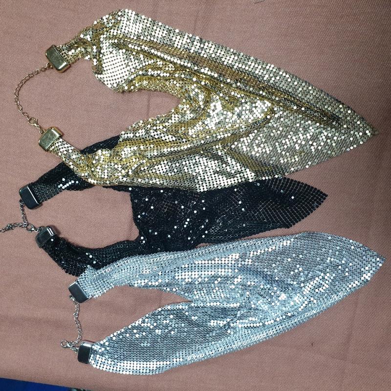 Украшение на шею, в виде галстука-кольчуги. Очень легкая и эффектная. В наличии 3 цвета: серебристый, черный и золотой. Очень стильно смотрится...
