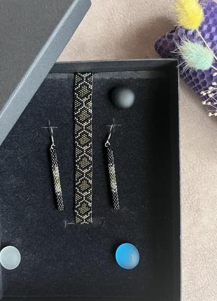 Браслет і сережки зі зміїним принтом , виготовлені з високоякісного японського бісеру. Гіпоалергенна фурнітура.