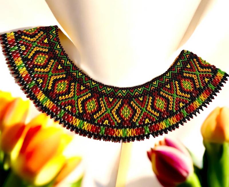 Украшение из бисера на шею, ручная работа, гущальская, вышиванка