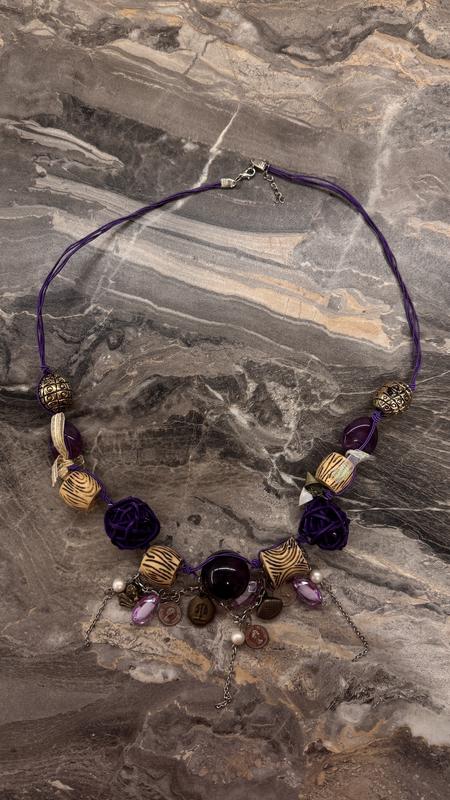 Интересное ожерелье колье, много деталей, натуральные камни, качественный пластик. Стан идеален. Длина 80см