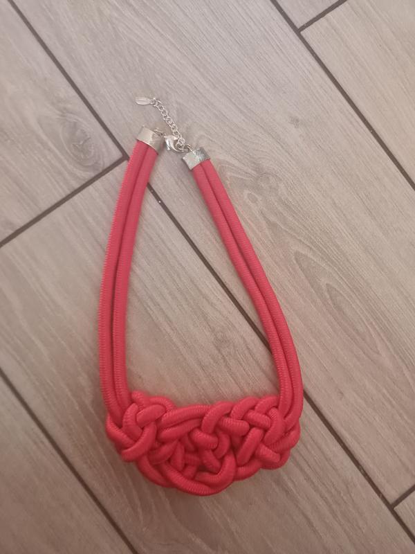 Веревочное колье красного цвета.