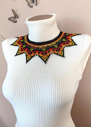 Силка цветная изготовлена из чешского бисера ручной работы выполнена из в технике нанизки. Ширина ожерелья около 7 см, длина ожерелья около 38 см плюс цепочка продлитель на 5 -7 см