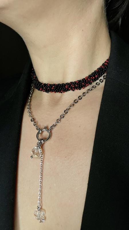 Чокер по типу жгута. Можно заказать на застежке с удлинителем или на магните. Длина 31см Залюбки сделают под ваши настройки ❤️