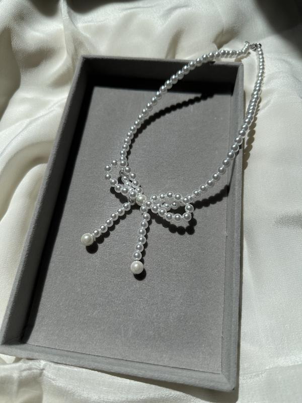 Прикраса виготовлена зі штучних перлинок, довжиною приблизно 45 см