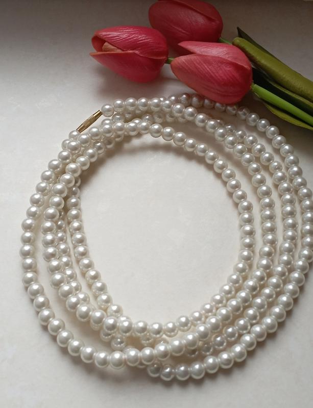 Нитка жемчуга 1м 64 см, дуже довга. Підійде під любий образ Фантазуйте як накрутити жемчуг❄️
