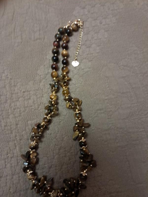 Тигровый глаз(,есть разные его названия).Крихта +6ммбусины.Вставка бисера Мииевики,позолота.Длина 40 см+5см