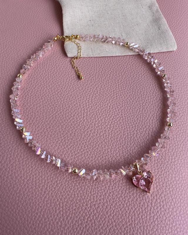 Невероятно красивое ожерелье из хрустальных бусин. Очень красиво сверкает. В наличии цвета: прозрачный, черный, розовый. Длина: 38 см + удлиняющая цепочка.