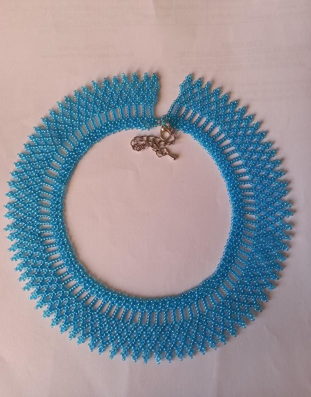 силка голубая дополнит любой образ Материалы: чешский бисер Длина - 38см+7см удлинитель Ширина-3 см Возможен повтор в другом цвете