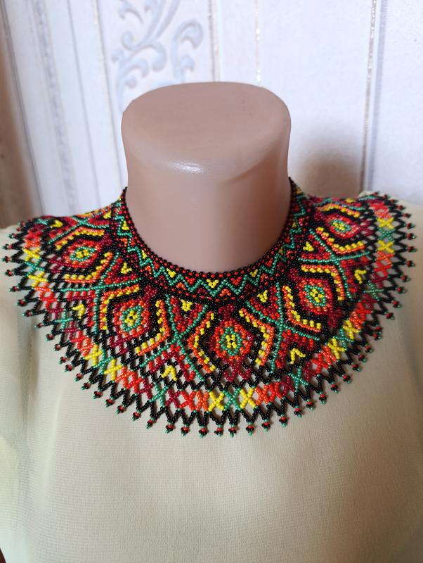 Чудова силянка! Ее яркие цвета и сложный орнамент действительно привлекают внимание. Вот более подробное описание этого украшения: Материал: Силенка изготовлена из бисера разных цветов, чаще всего используются контрастные оттенки, как в данном случае. Бисер нанизан на прочную нить и закреплен таким образом, чтобы образовать плоскую ленту. Орнамент: Орнамент этой силинки геометрический, что характерно для традиционных украинских украшений. Преобладают ромбы, треугольники и зигзаги, которые образуют сложный узор. Каждый элемент орнамента имеет свое символичное значение. Цвета: Использованные яркие, насыщенные цвета: красный, оранжевый, желтый, зеленый и черный. Такая цветовая гамма является традиционной для украинского народного искусства и символизирует солнце, землю, воду и огонь. Форма: Силенка имеет форму ленты, которая плотно облегает шею. Она может быть разной длины и ширины, в зависимости от традиций региона. Силка является не просто украшением, но и оберегом. Она символизирует женственность, красоту, плодородность и оберегает свою обладательницу от злых сил. Каждый элемент орнамента имеет свое значение: Ромб: Символ женского начала, земли, плодородности. Треугольник: Символ огня, солнца, мужского начала. Зигзаг: Символ воды, жизни, движения. Автор схеми Людмила Сторож