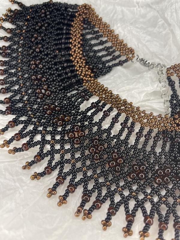 Силка черно-коричневая, из бисера разного размера. Ширина 6см, длина 34см + удлинитель 5см Фурнитура из нержавеющей стали Подарункове пакування