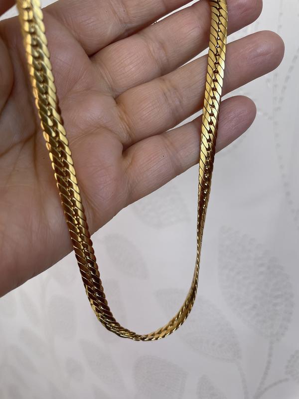 Стильне яскраво-золотисте кольє-чокер у вигляді широкого ланцюжка. Стан нового. Довжина- 41.5 см, є подовжуючий ланцюжок 5 см Ширина- 0.7 см