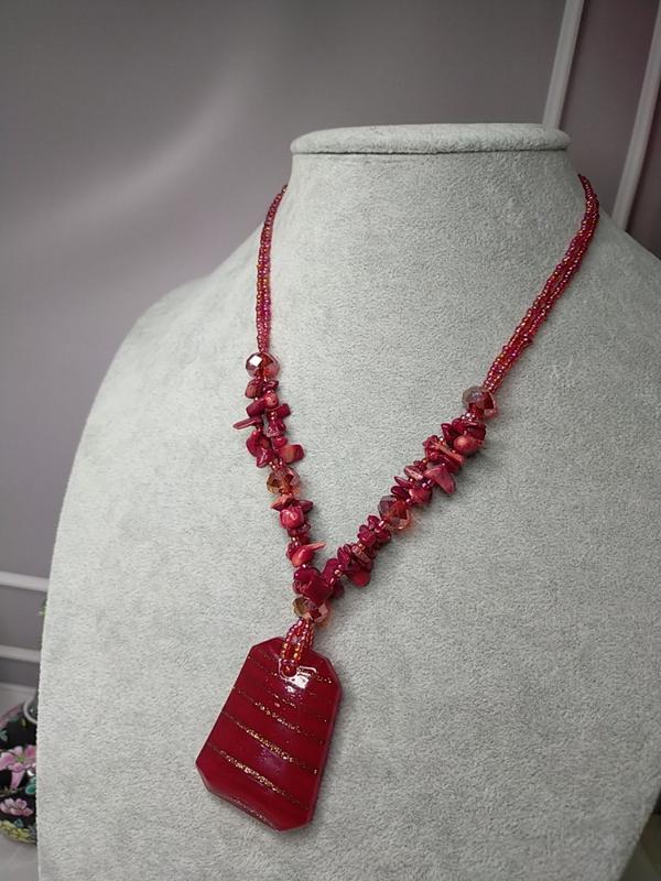 Вольет с подвеской из муранского стекла и кораллами. Длина-44+5см.