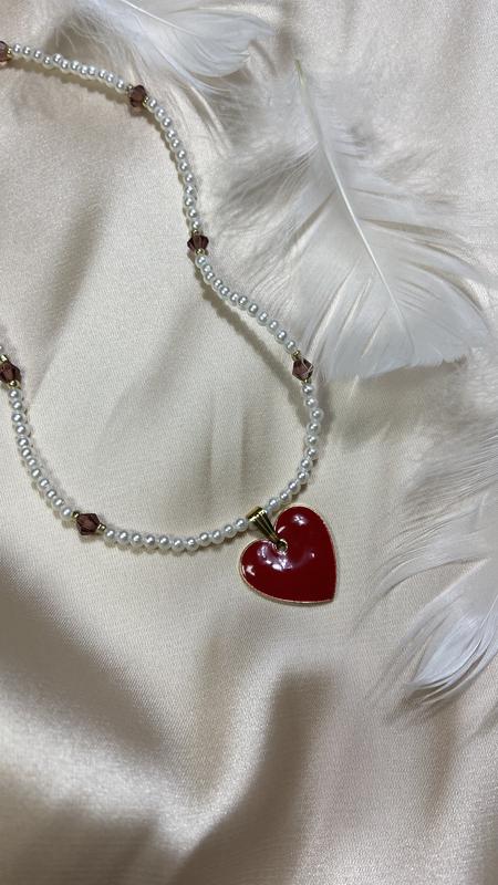Колье чокер с бусин и подвеской «сердце»