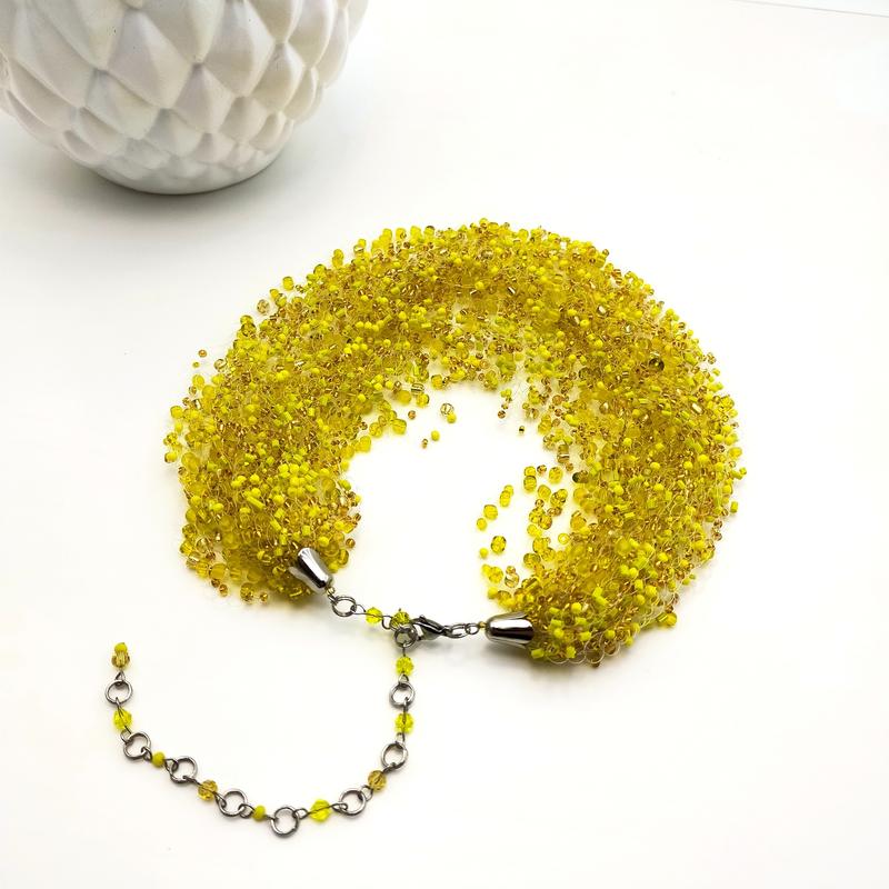 Воздушное колье из бисера желтого цвета