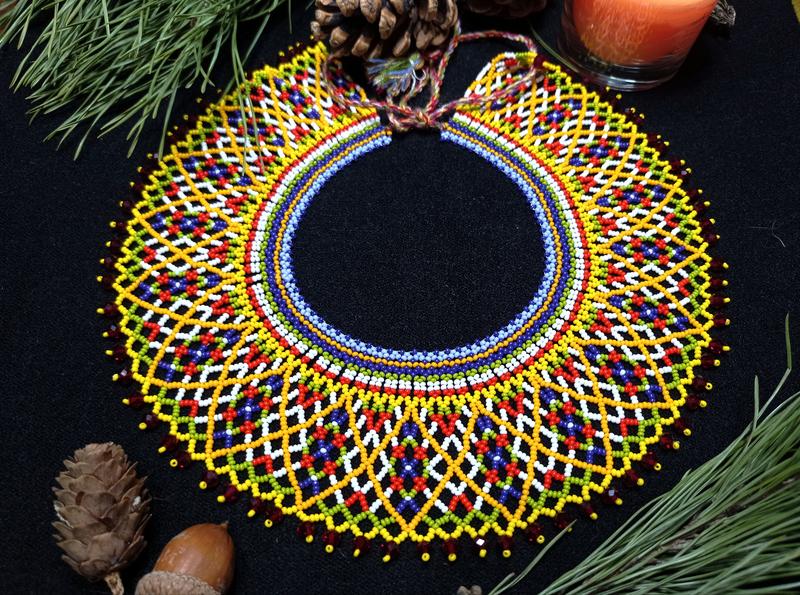 Яркая силянка, выполненная из чешского бисера и хрустальных намистых насыщенного темно-красного цвета. Завязки регулируют длину украшения. Красивый и актуальный подарок к праздникам!