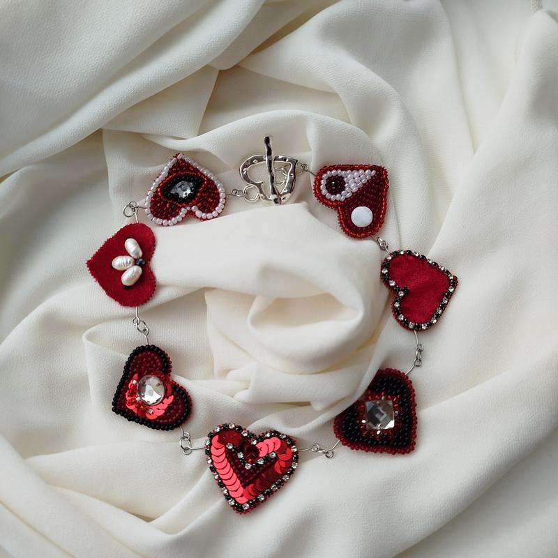 Длина 35см (можно сделать длиннее) Сердечки бархатные на обратной стороне Застежка в форме сердца