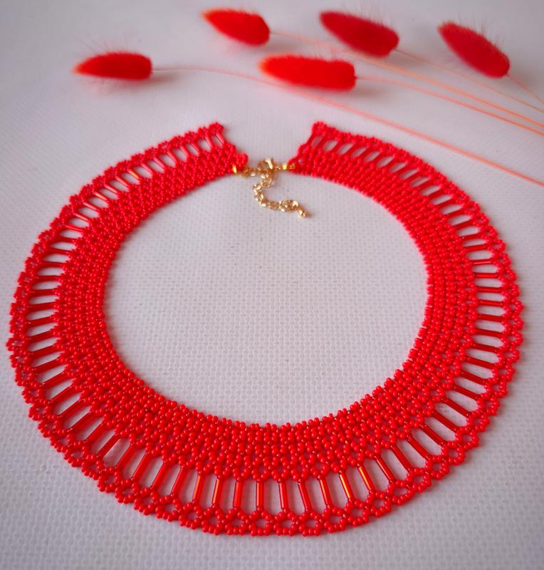 Силка яркая выполнена из чешского бисера в технике нанизки. Ширина ожерелья около 3 см, длина ожерелья около 40 см плюс цепочка продлитель на 5 см