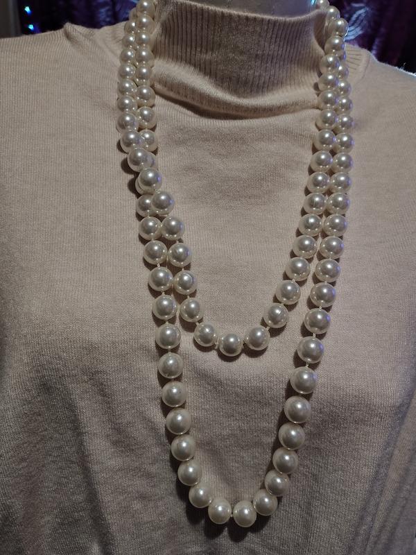 ожерелье перламутровое очень длинное, на фото складывание дважды, в двух местах было выключено, отремонтировано, длина 140см, диаметр бусины 10мм. привезено из ОША. вещи секонд-хэнд сток, возврат нет.