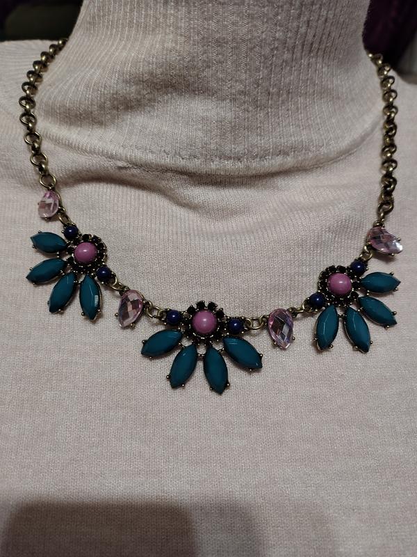 ожерелье очень красивое, цвет больших камней ближе к зеленому, длина регулируется. привезено из ОША. вещи секонд-хэнд сток, возврат нет.