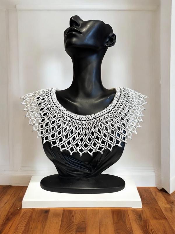 Біло-сріблясте кольє-силянка Ширина полотна 7см Довжина 37-42см