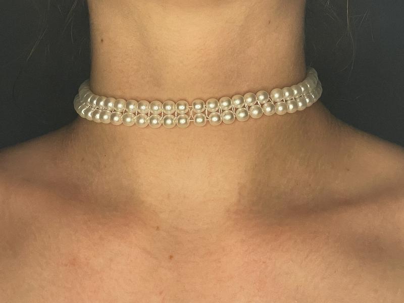 украшение из ожерелья можно носить как чокер или ослабить застежку и носить как колье длина - 28 см + застежка - 5 см ширина - 1 см