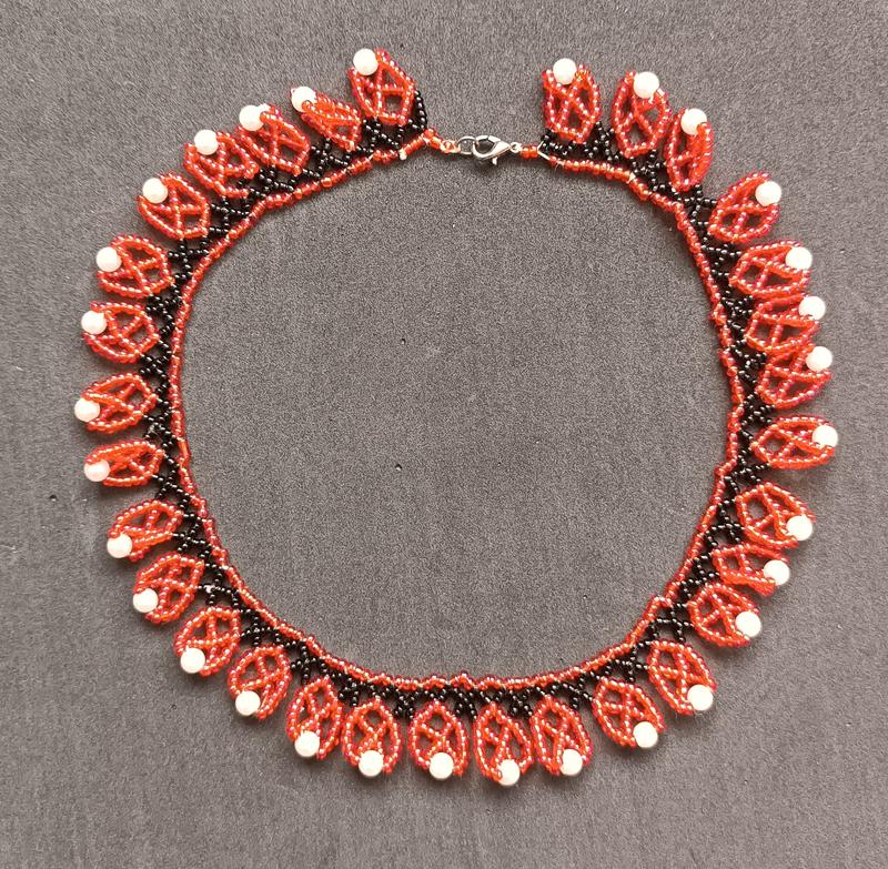 Силка изготовлена из бисера. Длина 36 см, ширина 2 см