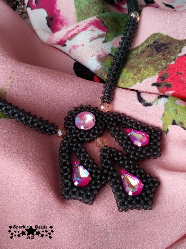 Колье АЙНУРА матовый тёмно-серый бисер с переливами розовых кристаллов Длина 40-45 см, регулируется удлинительной цепочкой; кулон 5,5х6 см В наличии Рекомендации по уходу за изделиями из бисера: 1. Бережное обращение. Не допускать механического воздействия: давление, сильное скручивание, удары; 2. Беречь от прямых солнечных лучей и влаги; 3. Хранить в сухом, темном месте ; 4. При необходимости протирать сухой мягкой тканью.