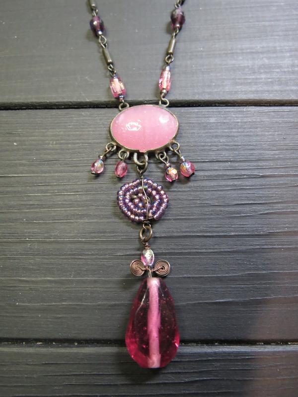колье с розовым камнем винтажное без нюансов Размеры на фото