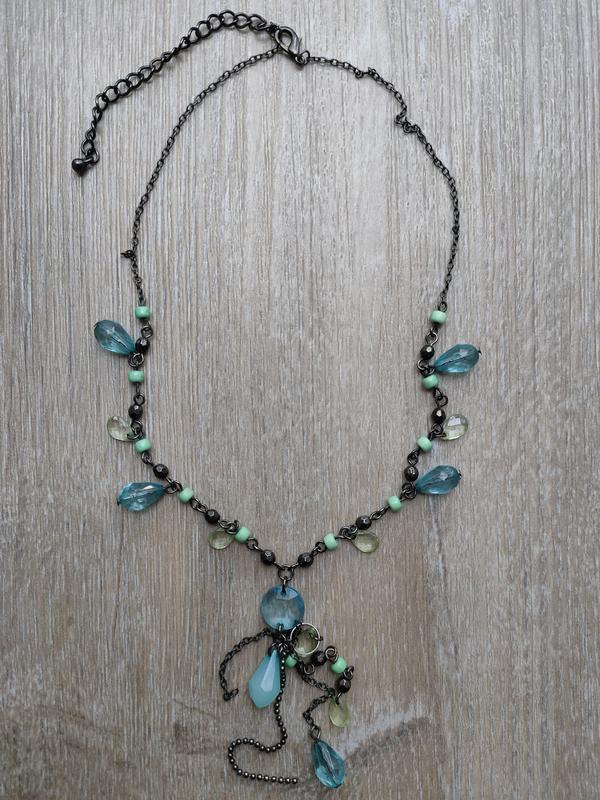 Продам винтажное изящное, нарядное колье из металла под черненое серебро с миниатюрными подвесочками из пластика в форме кристаллов. Очень красиво бликует и "играет' на солнце и под искусственным освещением. Длина - 41 см, с удлинительной цепочкой - 48 см. Замок надежный - карабин. По всем интересующим вопросам пишите - отвечу.