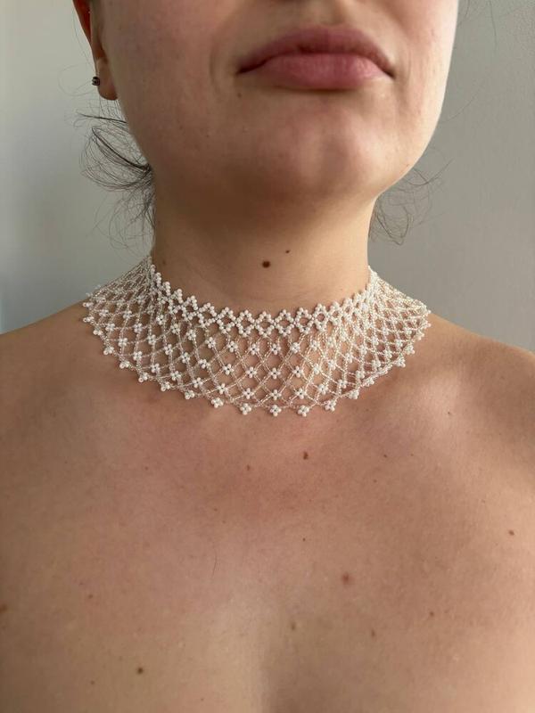 силянка белого цвета.выполнена из чешского бисера.длина 32см.ширина 5см.до 40см