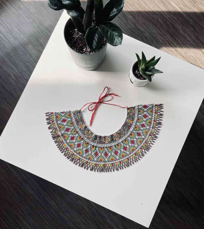Силянка з бісеру в сірому тоні, з яскравими акцентами. Легка та стильна прикраса. Ширина стійки - 35см (можна регулювати під дитячу шийку, також) Міцна нитка; чеський бісер; Гарне пакування 🎁