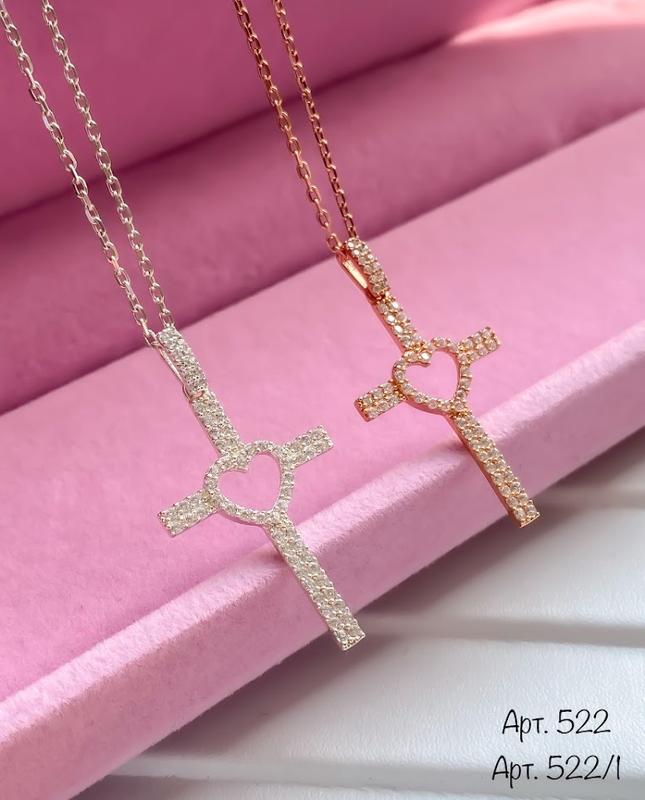 Арт. 522 (с цепочкой 522/1) • серебро 925| • куб. цирконий • размер крестика 30*20 мм (вместе с бунтиком 35*20 мм) • средний вес крестика 1.5 грамма цена в объявлении указана по подвесу без покрытия Арт. 522/1 (с цепочкой) 1500 грн