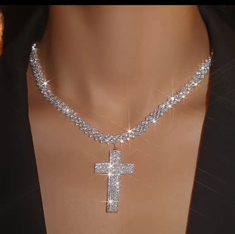 Колье со стразами и крестыпом
