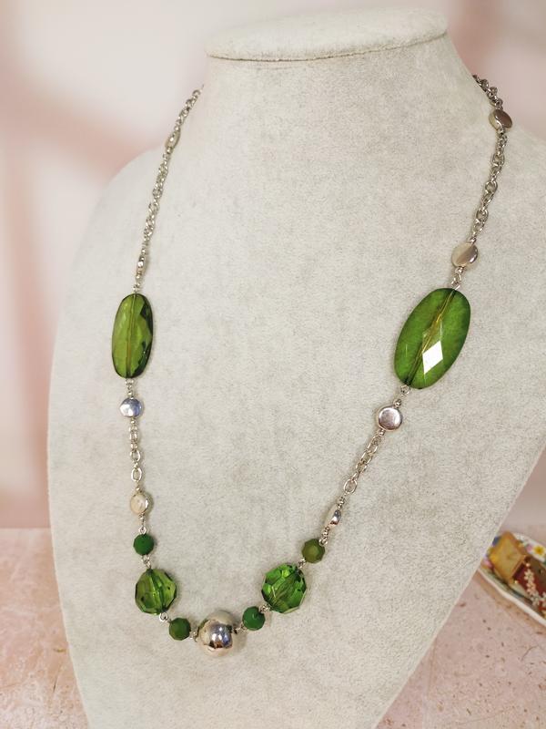 Колье с металлическими и акриловыми бусинами. Длина-68+8см