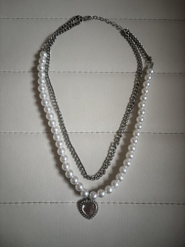 Колье цепочка +жемчужная нить , кулон сердечко