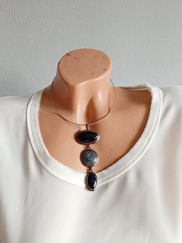 Кольє, підвіска сріблястого кольору з камінчиками під агат у вінтажному стилі, стан дуже хороший. Підписуйтесь та дивіться інші мої товари, так Ви зможете знайти цікаві ексклюзивні речі. Буду щиро рада співпраці з Вами.🙂 ПОВЕРНЕННЯ та ОБМІНУ ТОВАРУ НЕМАЄ!