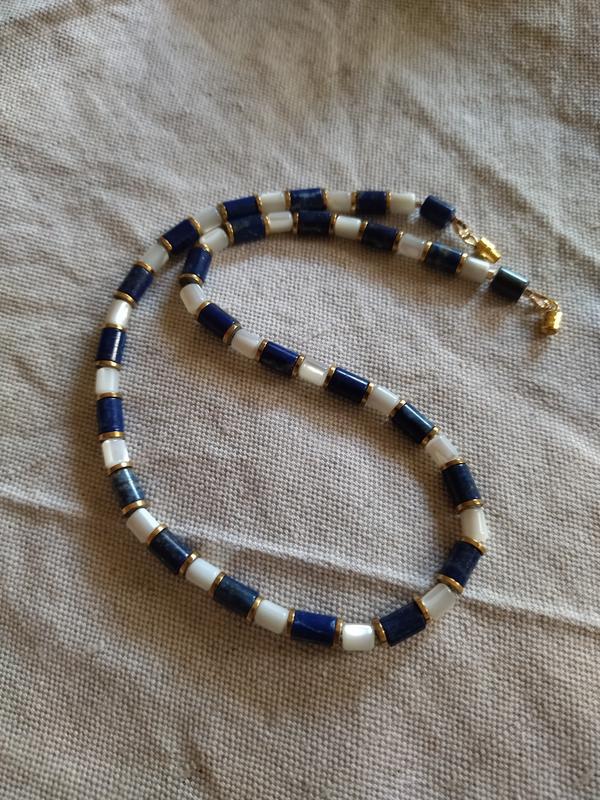 Бусы чокер из натурального камня лазурит, не окрашен и перламутр. Диаметр бусин 5мм, длина 40см. Длина браслета 16см, можно изменить. Красота! Цена указана за браслет.