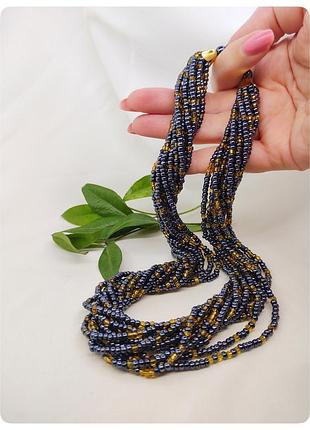 Ожерелье многорядное из бисера в этно-стиле, длина 45-48 см, бисер крупный, цвета мокрый асфальт и золотого.