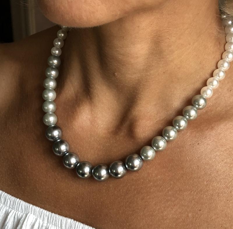 Бусы из двуцветного искусственного жемчуга с стальной застежкой Бусы нанизаны на стальную нить что делает их устойчивыми к разрыву . Длина 45 см .