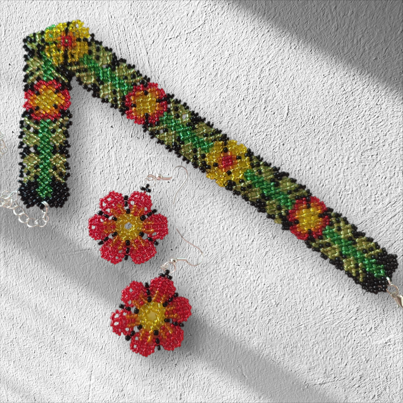 Комплект украшений ручной работы, который состоит из чокера и сережек, выполнен из бисера. Можно приобрести как комплект, так и отдельно. Ціна вказана за комплект