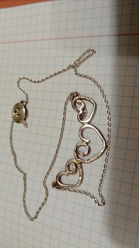 Нежное и необычное. На каждом сердечке проба 925, красиваятенка-тогл. Стан нового. Внимание, украшения продаются "продавцу на карту". Длина - 47 см.