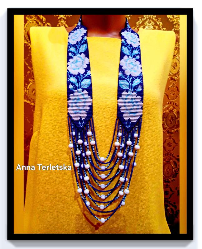 Оригинальный гердан,изготовленный из чешского бисера и прочной нити. Длина бусина 52см, ширина 4см.На заказ 5 дней.