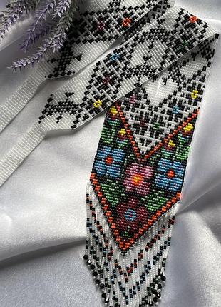Шикарний гердан з мотивами борщівської вишивки на білому тлі чекає на тебе