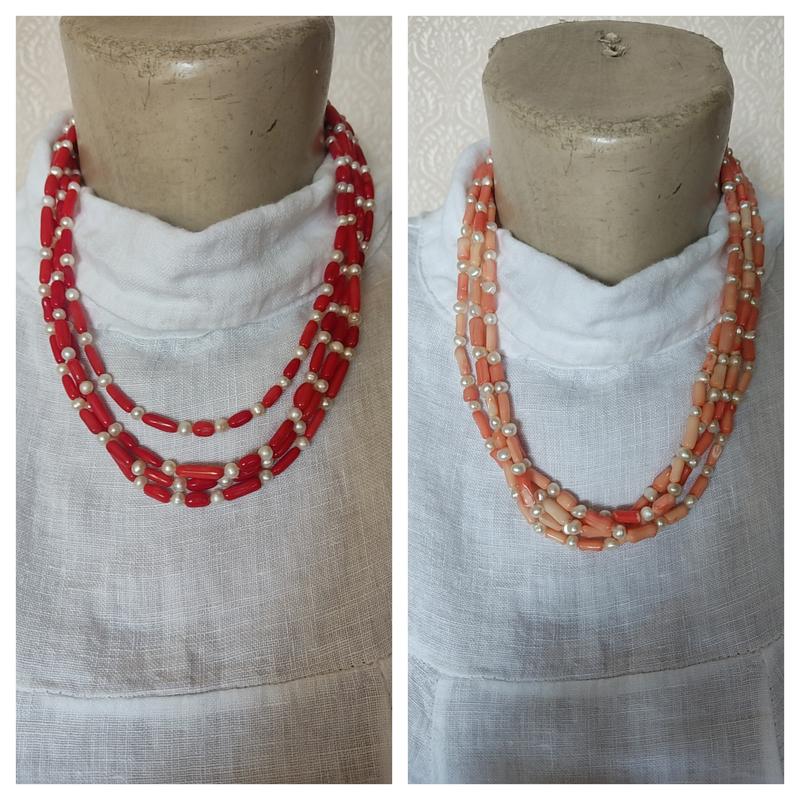 два ожерелье из натурального коралла длина 22-24 см, 4 ряда Цена за изделия.