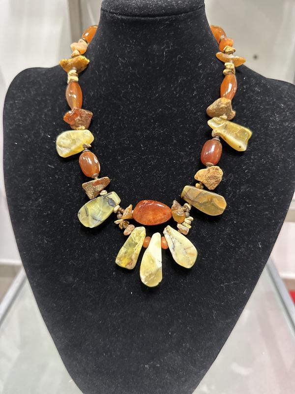 Кольє «Медове» з жовтих медових опалів - солодких, примхливих, м'яких та тягучих. Бурштин балтійський напросився до їхньої компанії, зігріваючи медовим смоляним сонцем. А також сердолік - вогненний і рясний. Трошки пісочної яшми - віск у вулику…. Довжина кольє 55 см. Робота авторська в єдиному екземплярі. Фото без корекції та фільтрів.